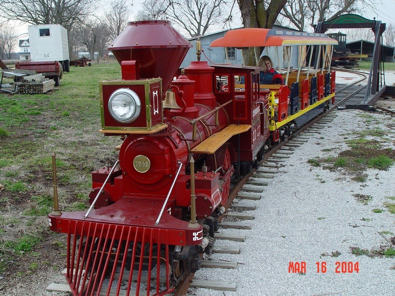 The red Chance, CP Huntington replica, locomotive was used in Osage Beach and Kansas City before coming to Springfield, MO. The green Chance, CP Huntington, replica was used in Omaha and Kansas City before being completely rebuilt by the Joplin & Springfield Railway.